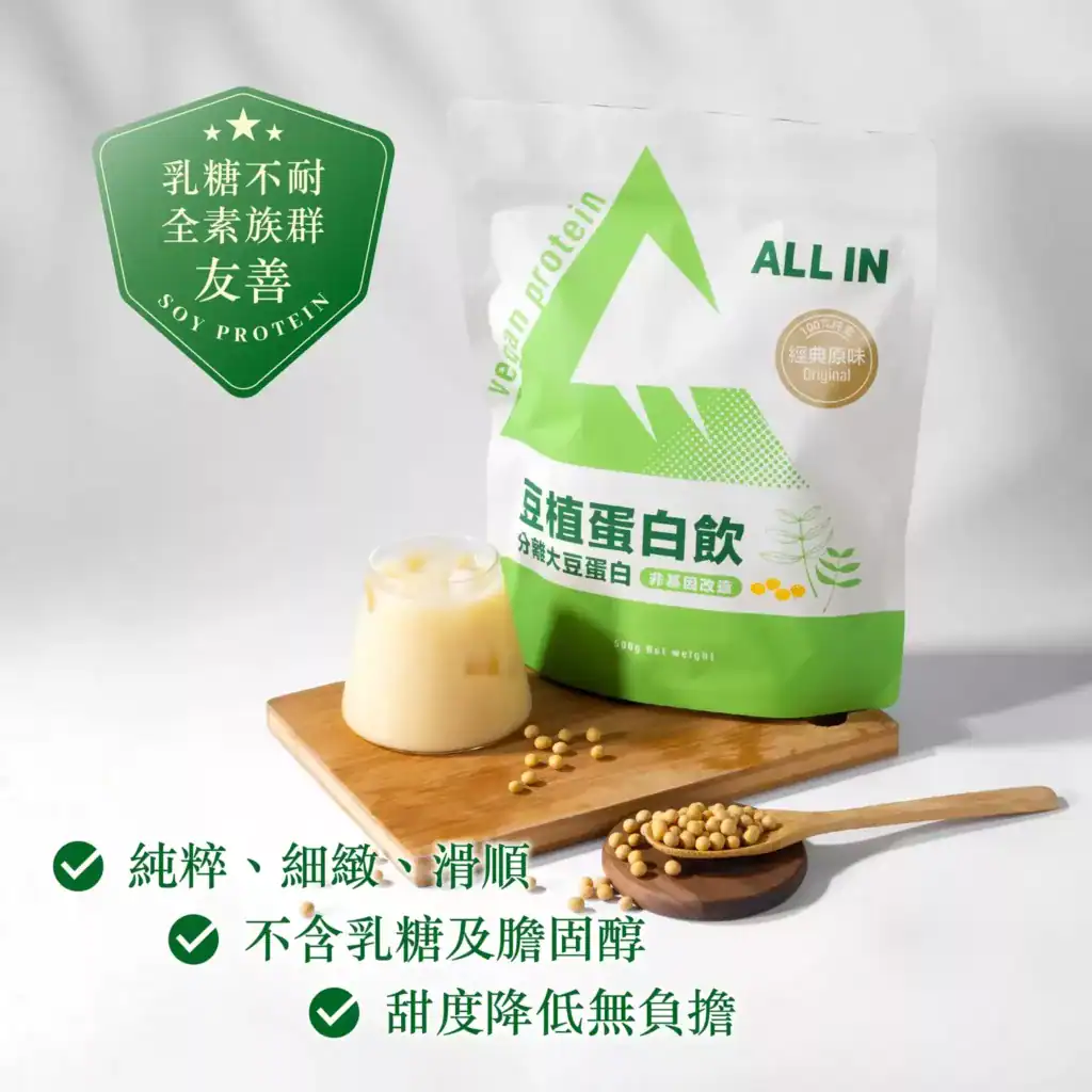 👉 如果你正在尋找一款兼顧 高純度、好口感與安心來源 的大豆分離蛋白,ALL IN 豆植蛋白 會是一個不錯的選擇!